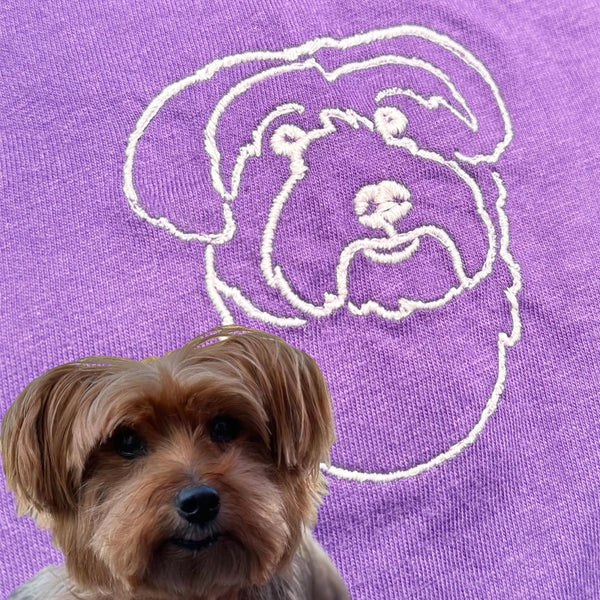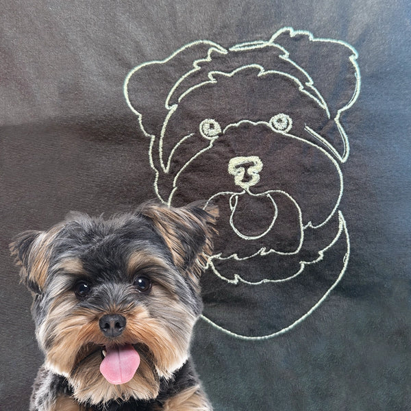 Wear your love for your pet with our hand-drawn, embroidered designs on premium apparel and accessories. Each piece is stitched with care to create a timeless tribute to your furry companion. Artfully crafted, made to last. ❤️